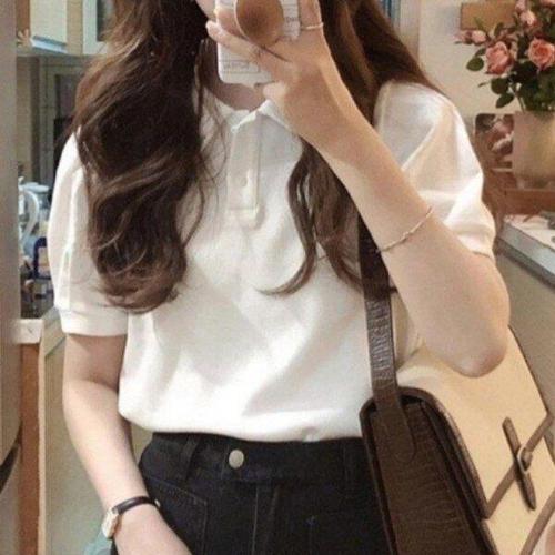 [모노무드]LMO 여자 숏티폴로카라 올데이 상의 심플 흰색 하프슬리브 반팔티