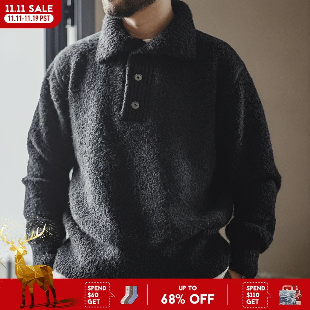 MADEN 남성용 두툼한 니트 스웨터 2024년 가을겨울 긴팔 칼라 접힌 루프얀 폴로셔츠 따뜻한 풀오버 니트웨어
