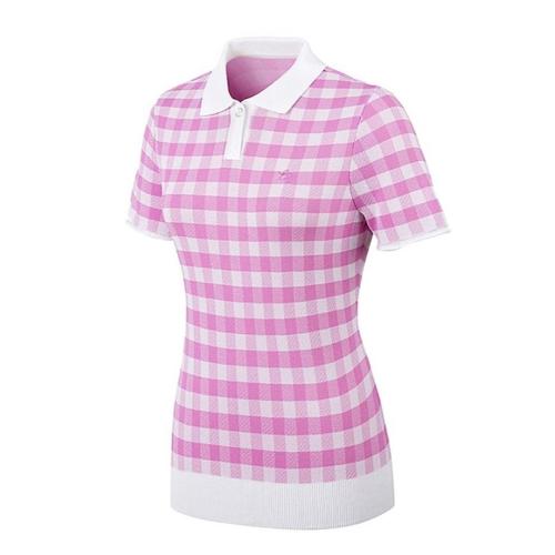 [엘르골프]변형 체크 폴로형 반팔 스웨터 6I43602-401A