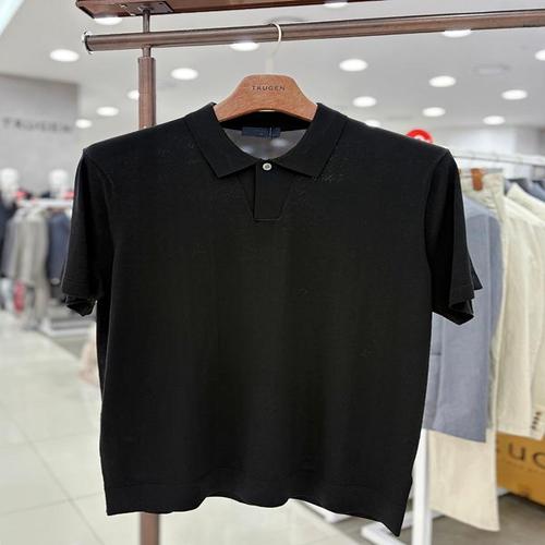 [트루젠]남자 천연섬유 여름 반팔 블랙 폴로 카라넥 니트 스웨터 티셔츠