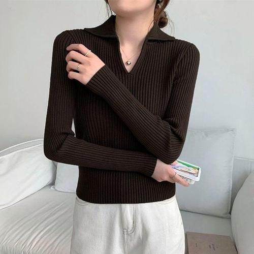 여자 포컬러폴로카라 스트라이프짜임 풀오버 유니크