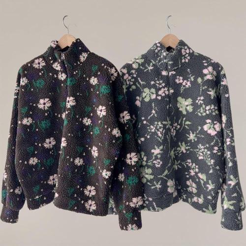 [미라클세븐]여성용 플라워 패턴 겨울 뽀글이 아노락 카라넥 오버핏 티셔츠