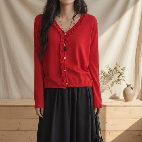[다잇템][다잇템] 여성 폴리 V넥 레이스 프릴 가디건_24750850_588872