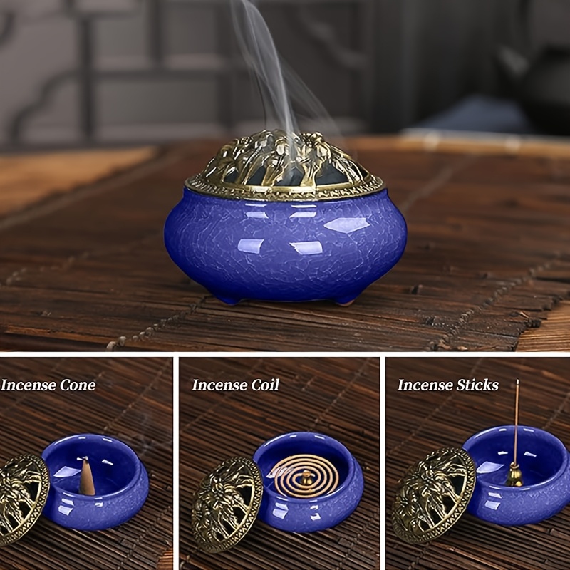 TEMU 아이스 크랙 킬른 세라믹 향로 - 창의적인 코일 향로 홈 데코, 샌달우드 버너 장식, 휴일 및 특별한 날을 위한 실내 캔들 홀더