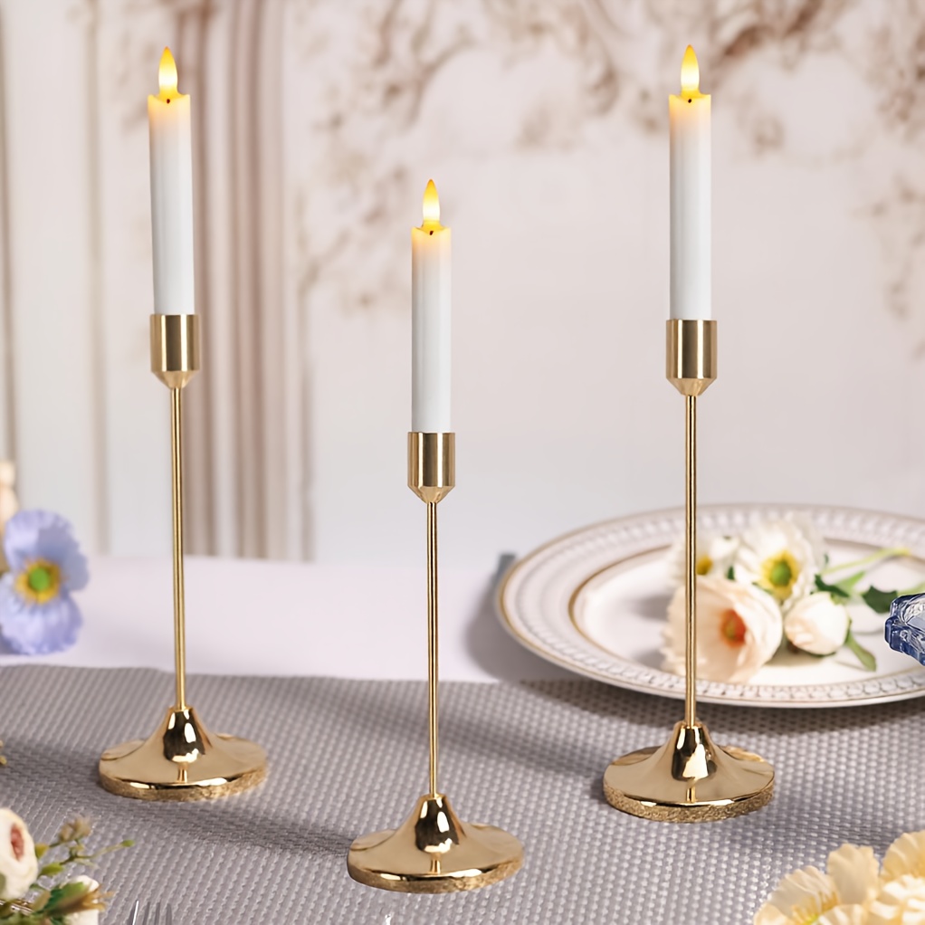 TEMU 3pcs 우아한 금속 촛대 홀더 세트 - 황금과 흰색, 테이블탑 마운팅, 폴리시드 핏, 로맨틱한 저녁 식사, 크리스마스, 할로윈, 기념일, 결혼식, 가정 및 호텔 장식, 생일 선물에 이상적 (촛불은 포함되지 않음)