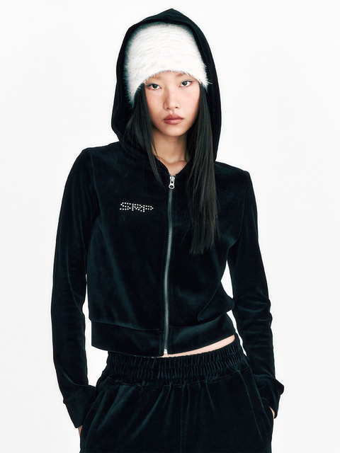 [쎄르페] 스터드 벨벳 크롭 후드집업 퓨마 블랙