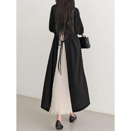 [시크루즈]링칸 플리츠 배색 스트링 롱 원피스_BDOP030