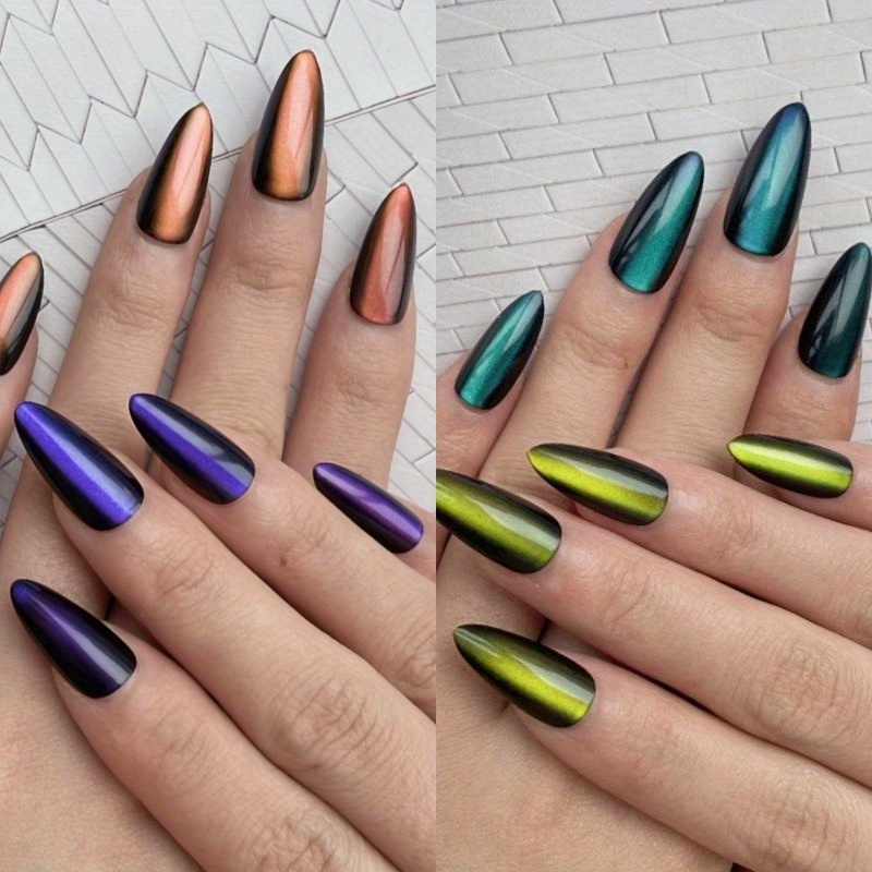 TEMU 96개/박스 (4종 세트) 아몬드 쉐이프 캣아이 그라데이션 디자인 프레스온 네일, 1개 젤리 글루 및 1개 네일 파일 포함, 여성용 데일리 웨어 및 카니발 파티용 아크릴 인조 네일