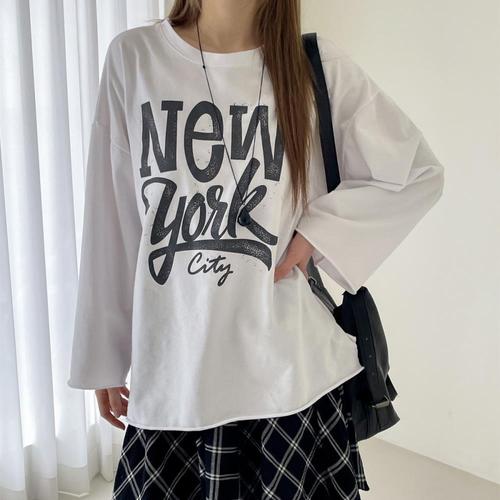 [옷자락]여자 루즈핏 드롭숄더 워싱면 라운드넥 긴팔티