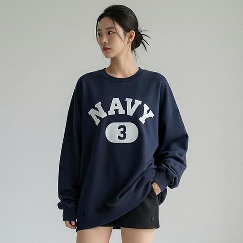 [유니제이] 빅사이즈 오버핏 NAVY 프린팅 맨투맨 RSTS3093