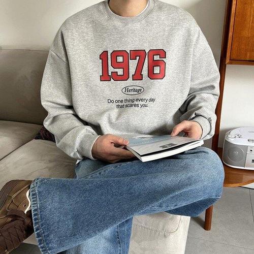 [피팅남]남자 1976 오버핏 봄 가을 프린팅 맨투맨 [5color]
