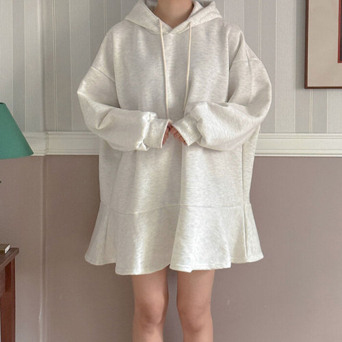 옷자락 / 여자 빅사이즈 플레어 프릴 아방핏 후드 미니 원피스