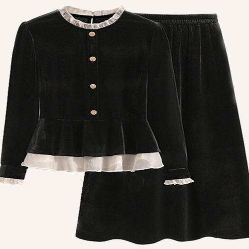 [예쎄][예쎄] 벨벳 프릴 블라우스+스커트 (S4WSE027A)
