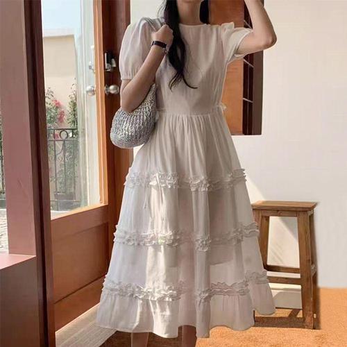 [오너클랜]인기상품 여성 하객 데이트 모임 프릴 캉캉 퍼프 반팔 롱원피스 [WFHPJTK_260320]