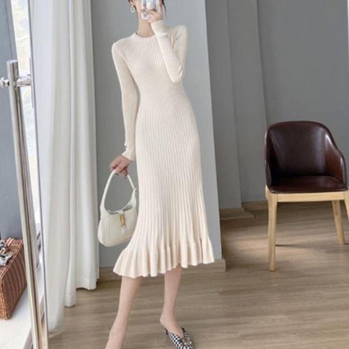 [SBD] 슬림핏 긴팔 골지 A라인 니트 원피스 롱원피스