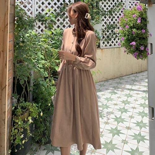 여성원피스 여성 캐주얼 카라 롱원피스 봄가을 치마 데이트룩 1P