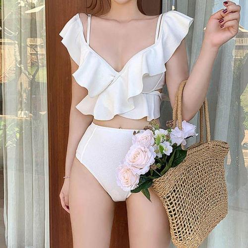 프릴 투피스 비치 비키니 일체형패드 비치웨어 바캉스 WEEBBAA
