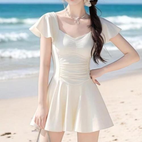옷자락 / 여성 러블리 하트넥 프릴 반팔 수영복 원피스