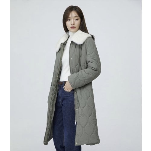플라스틱아일랜드 퍼 카라탈착 허리스트링 롱 패딩 점퍼 (PR4PZ064)