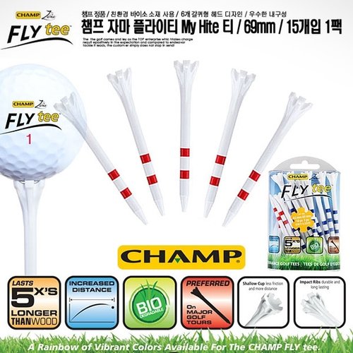 [기타]챔프 자마 플라이티 줄티 미들티 My Hite 69mm(15개입) (비거리 방향성 향상 골프티)
