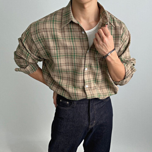 [엠클로]남자 오버핏 플란넬 포켓 체크 남방 셔츠