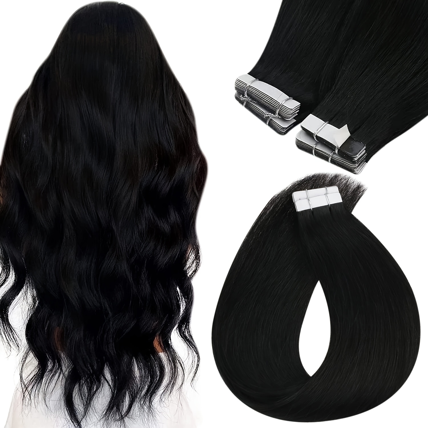 TEMU 블랙 테이프 인 헤어 익스텐션, 합성 및 천연 혼방, 20인치 웨프트로 제공. 코스프레, 파티, 비즈니스 이벤트, 뮤직 페스티벌, 할로윈 및 크리스마스에 적합하며 10개입으로 제공됩니다.