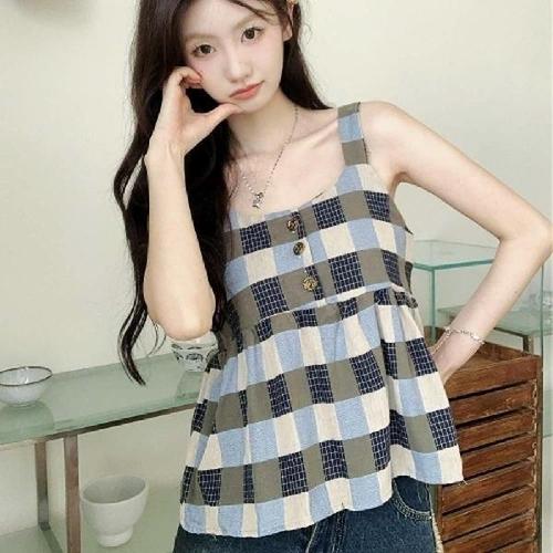 [엄지척]플레어 체크 캐주얼나시 탑 민소매_19627971_667501