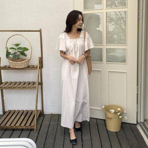 [에이치플러스몰]마디라 여름 온나핏 반팔 프릴 플레어 롱 데님