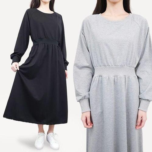 [에이치플러스몰]오버핏 간절기 긴팔 플레어 롱원피스 등원룩 맨투맨