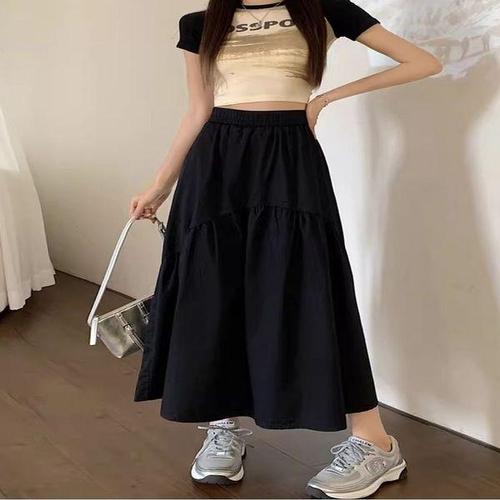 [에이치플러스몰]여자 편안한 허리밴딩 라운드 롱스커트 플레어 긴치마