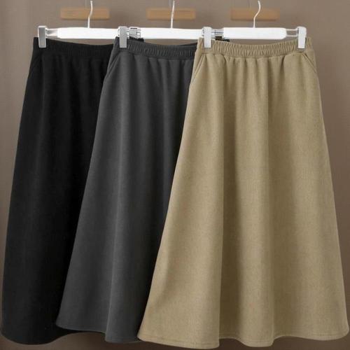 [신상오픈런]여성용 따뜻한 겨울 코듀로이 롱스커트 양털안감 플레어스커트