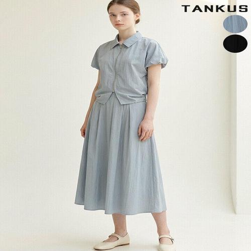 [탱커스]여성 바스락 셔링 반팔 집업 플레어 스커트 셋업