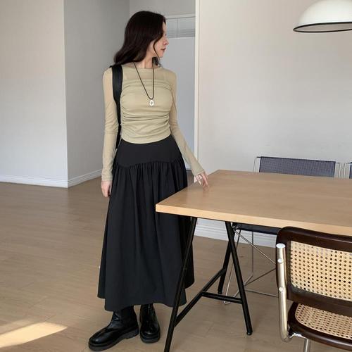 캐럿 여성 사계절 롱 플레어 스커트