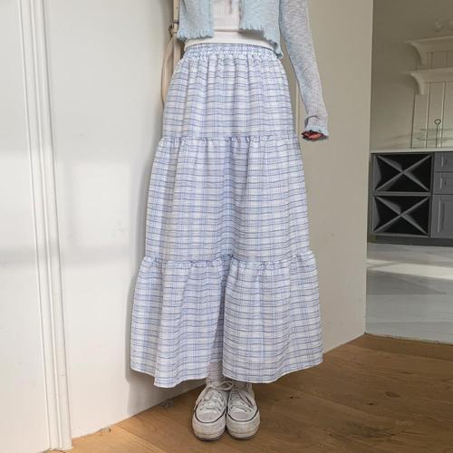 [옷자락]여자 간절기 언발 체크 밴딩 플레어 스커트