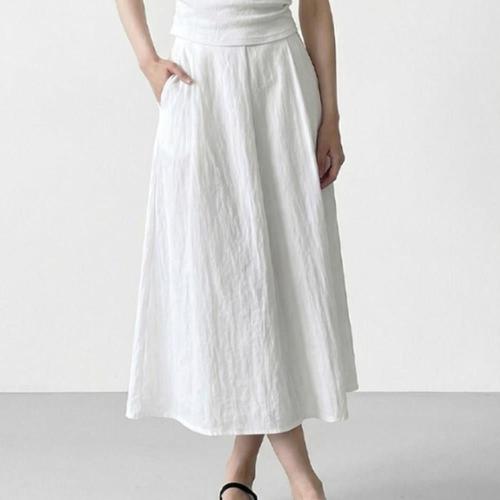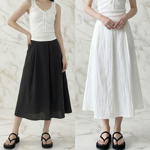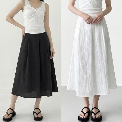 플레어 린넨 주름 플리츠 롱 스커트 치마