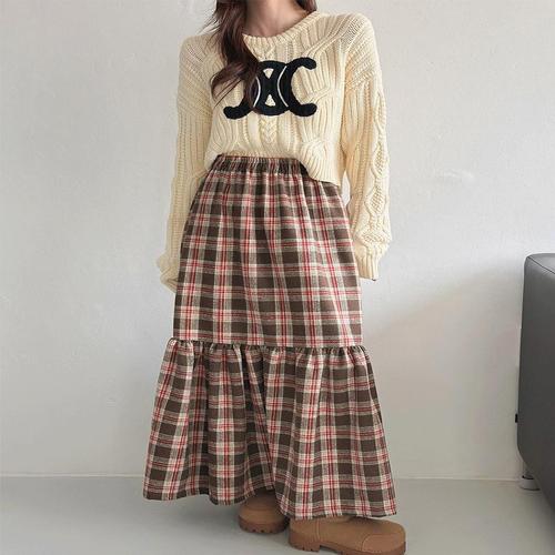 [퍼니걸스]밴딩 모직 체크 캉캉 플레이 롱 스커트 9114 여성의류
