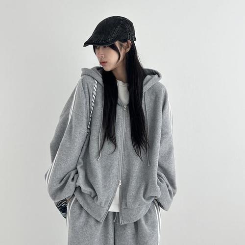 [다잇템]여자 부드러운 플리스 후디 그런지 박스핏 집업 (23649635A)