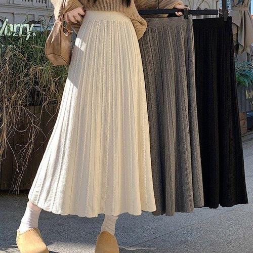 [핑크엘리제]플리츠 페미닌 롱스커트 유르딘니트롱스커트
