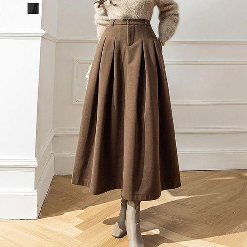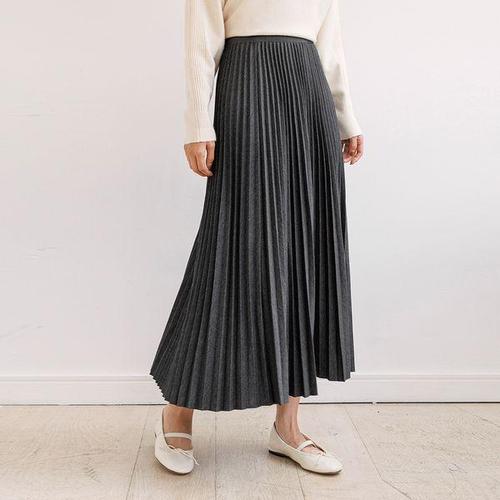 [리엘라]라벨드 모직 플리츠 기모 롱 스커트