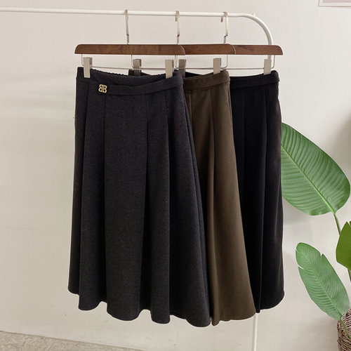 허니제이 / 키노 모직 플리츠 기모안감 뒷밴딩 롱 스커트(3color)