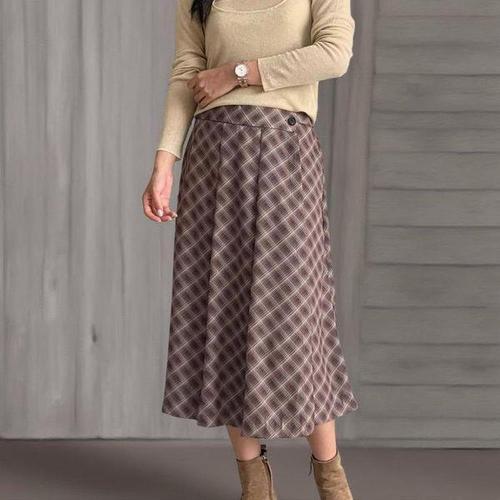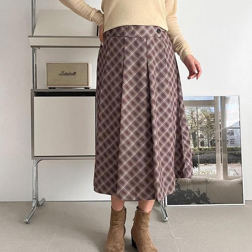 [신상오픈런]여성용 체크 패턴 랩스커트 플리츠 빅사이즈 롱스커트