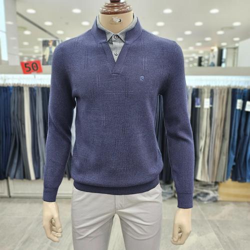 [피에르가르뎅](모다인천점)네이비 솔리드 라이크 셔츠 레이어드 니트/PQKT3353A_IC