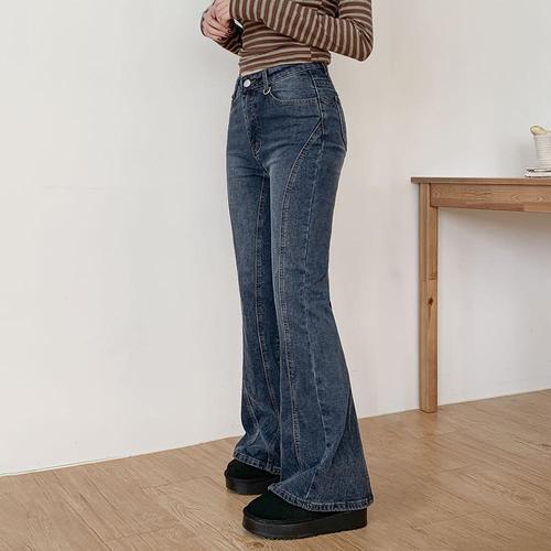 [피치기모] 가비아 라인 워싱 데님 부츠컷 팬츠 (2color)