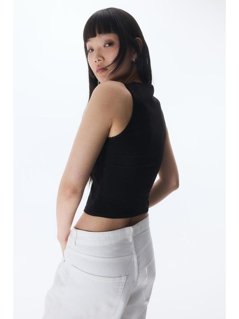 [에이치엔엠] 피코 트리밍 슬리브리스 탑 블랙 1259458001