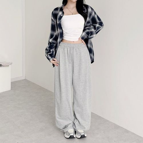 [핑크시슬리] 코튼 블렌딩 핀턱 와이드 트레이닝팬츠