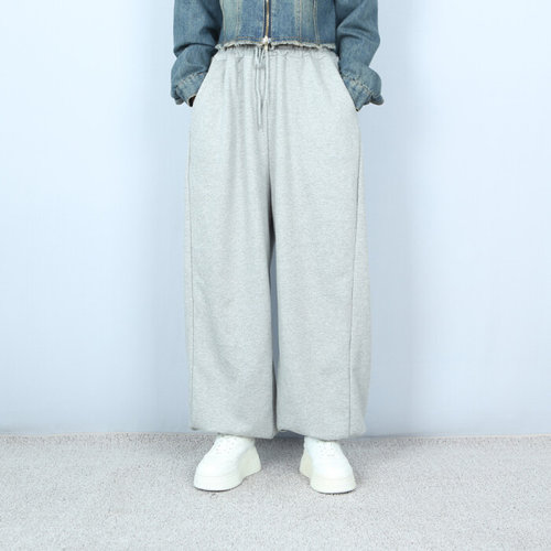 GHOST REPUBLIC 커브드 사이드 핀턱 벌룬 스웨트팬츠 GLP-650_그레이