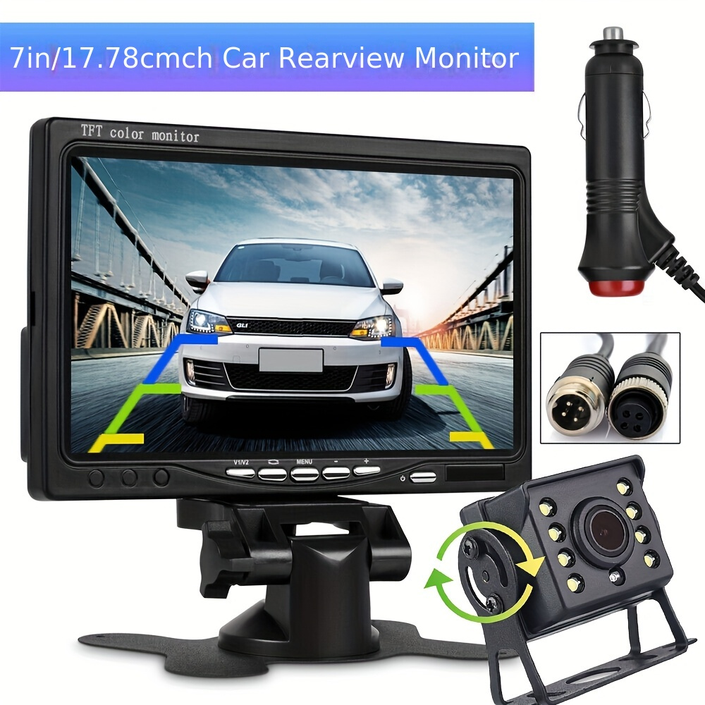 TEMU 7인치 HD 모니터 + 후방 카메라 키트 4핀 케이블 내구성 강화 RV 버스 트럭 트레일러용 12V/24V 간편 설치