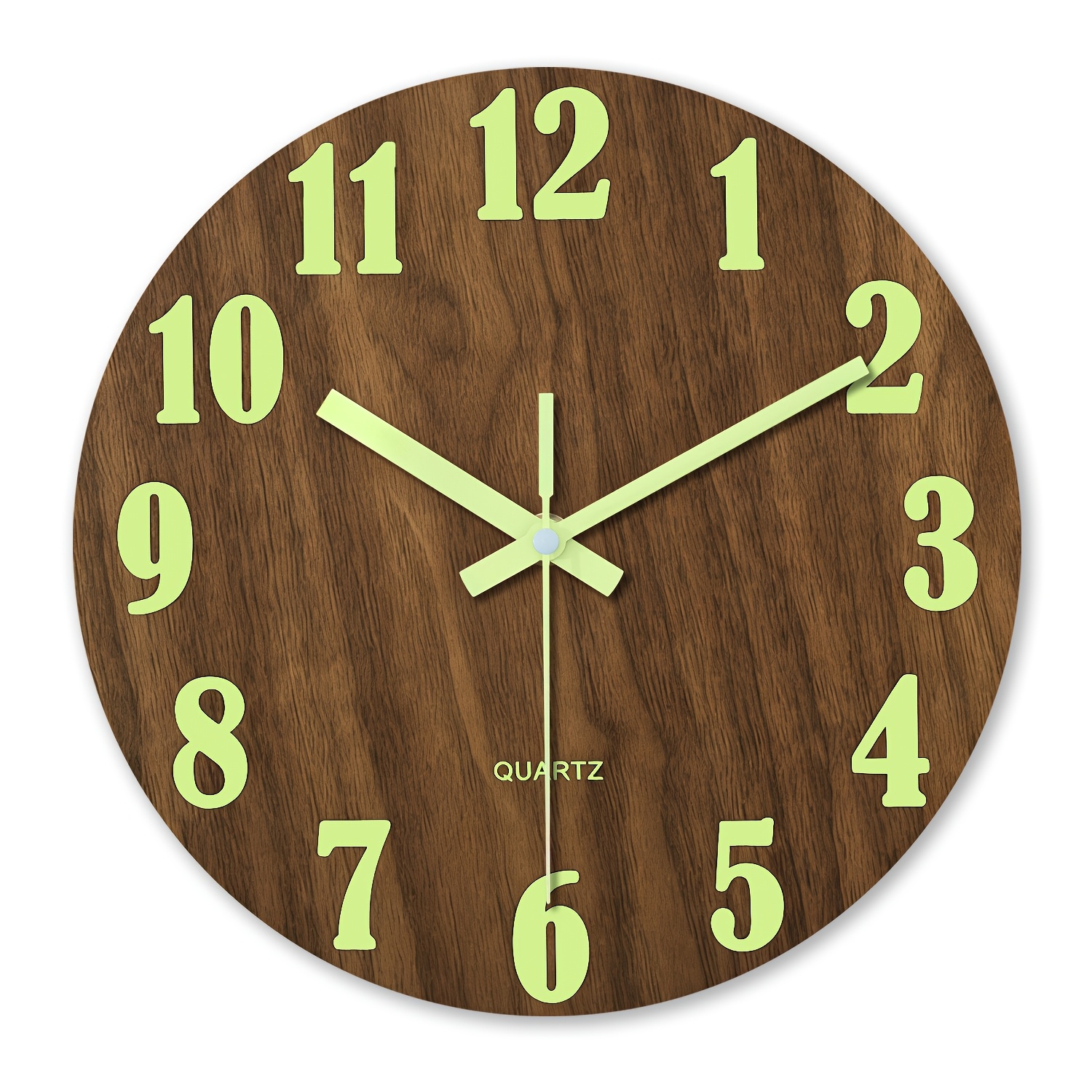 TEMU 기능 나무 원형 무음 야광 벽시계