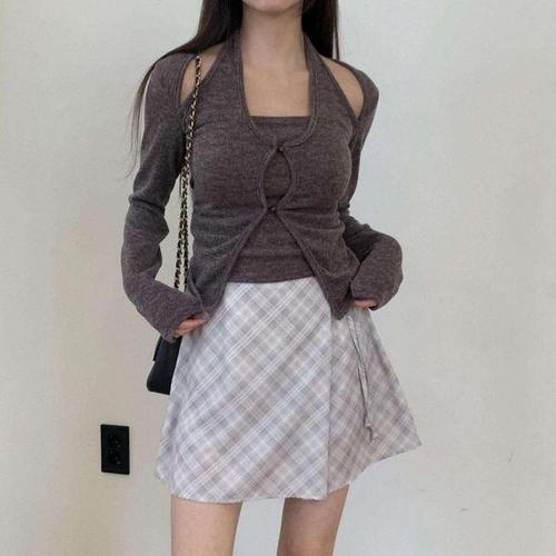 [옷자락]여성 슬림핏 홀터넥 레이어드 슬림핏 긴팔 니트