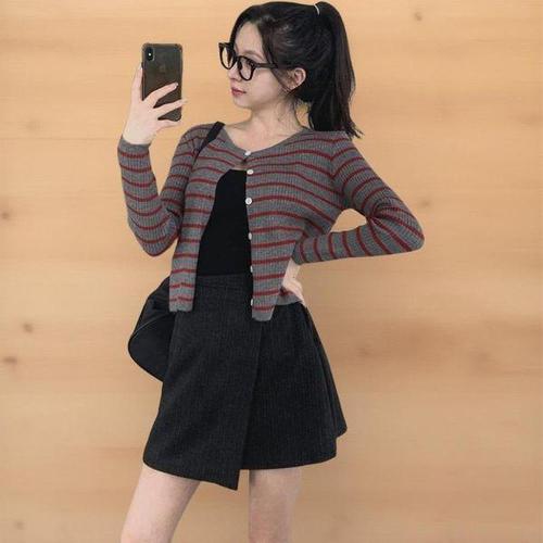 [신상오픈런]여성 슬림핏 배색 스트라이프 니트 가디건